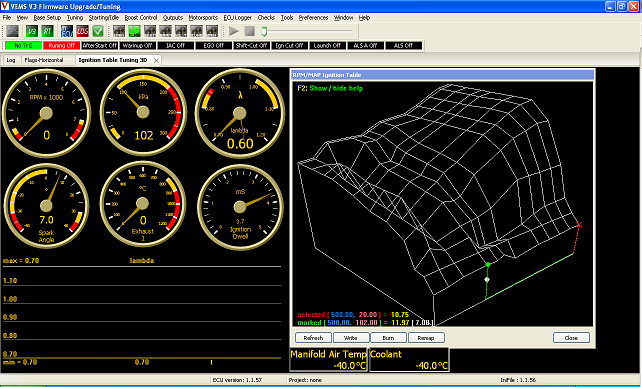 VemsTune is the configuration/tuning software for Vems V3 ECU. It allows firmware upload config upload, all of the config/tuning parameters to be modified via (dialog, table editor, curve editor) and has rich real-time Gauges.