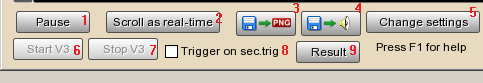 7. Stop V3: stop waiting for incoming triggers. See also Pause button! This button is enabled only in online mode.