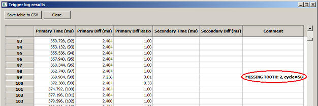 A sample result with only primary triggers, m582 trigger type. (Missingtooth, N-2)