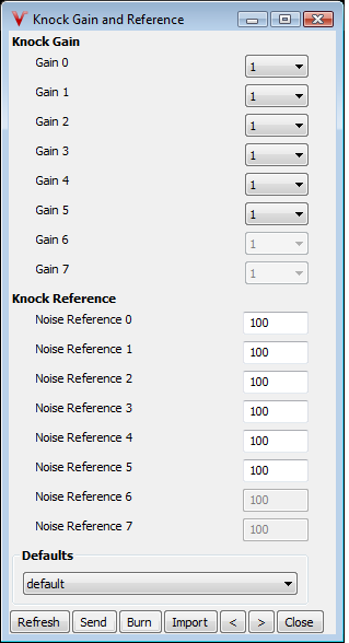 Knock gain and reference settings VemsTune dialog