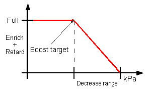 Boost target/Start decrease of Enrich/Retard at: Launch boost target (when lower than normal boost target), also starting point of Enrichment/Retard downscale.