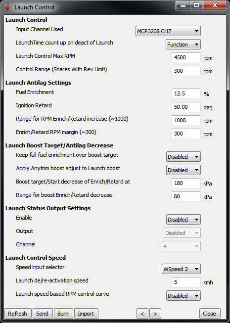 - speedbase control disabled: launch function activates when switch active, limit rpm by launch control max rpm (using sparkcut), over rpm enrich retard margin (slope) retard/enrich; deactivate launch function when switch deactivated